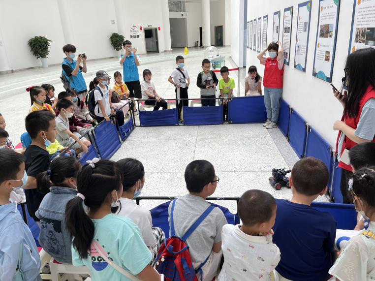 说话的机器人、会写字的机器人、能潜水的机器人……30 余位龙泉驿区青少年来到位于成都市龙泉驿区的哈工大机器人成都科普基地,与100 余种形态功能各异的智能机器人来了一场亲密接触,通过人机互动,与机器人对话、触摸、操作与游戏,让青少年感知到与机器人在一起的奇妙乐趣,激发他们对于机器人相关的探索兴趣,更加直观地了解我国在各个领域自主研发的先进机器人设备,真实触碰“起来”科普知识。